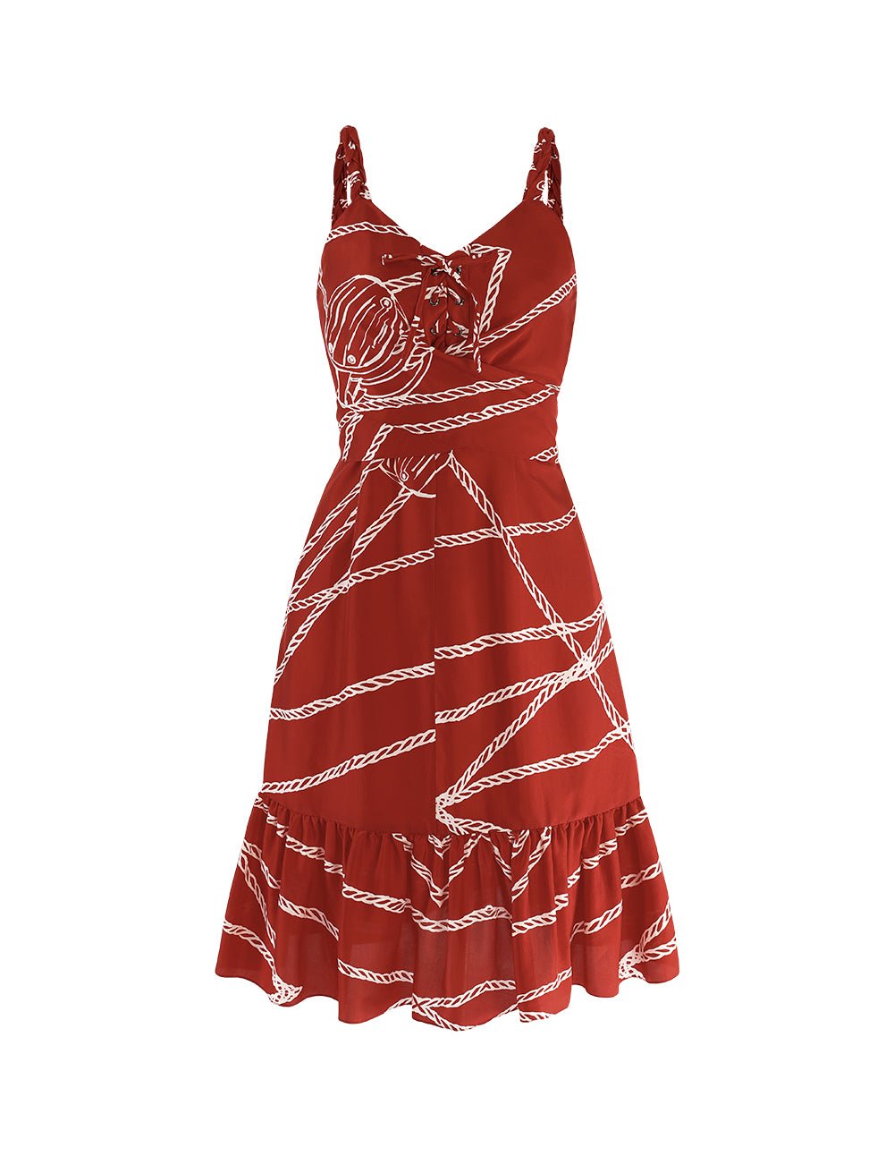 MARYLING Red white rope print woven belt dress