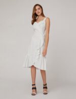 This elegant striped dress. with its flowing cut and ruffle detail at the hem. showcases alluring femininity. making it easy to look youthful and stylish for the new season.